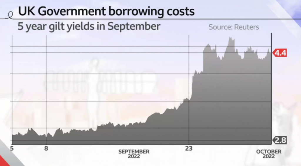 Þessir háu vextir stórhækka kostnað breska ríkisins við að taka lán þannig að til að róa markaðinn þá ræðst ríkisstjórnin á þá sem minnst mega sín til að lækka lántökur. Auk þess boðar ríkisstjórnin stórfelldar breytingar á reglugerðum fyrir fyrirtæki og fjármálastofnanir.