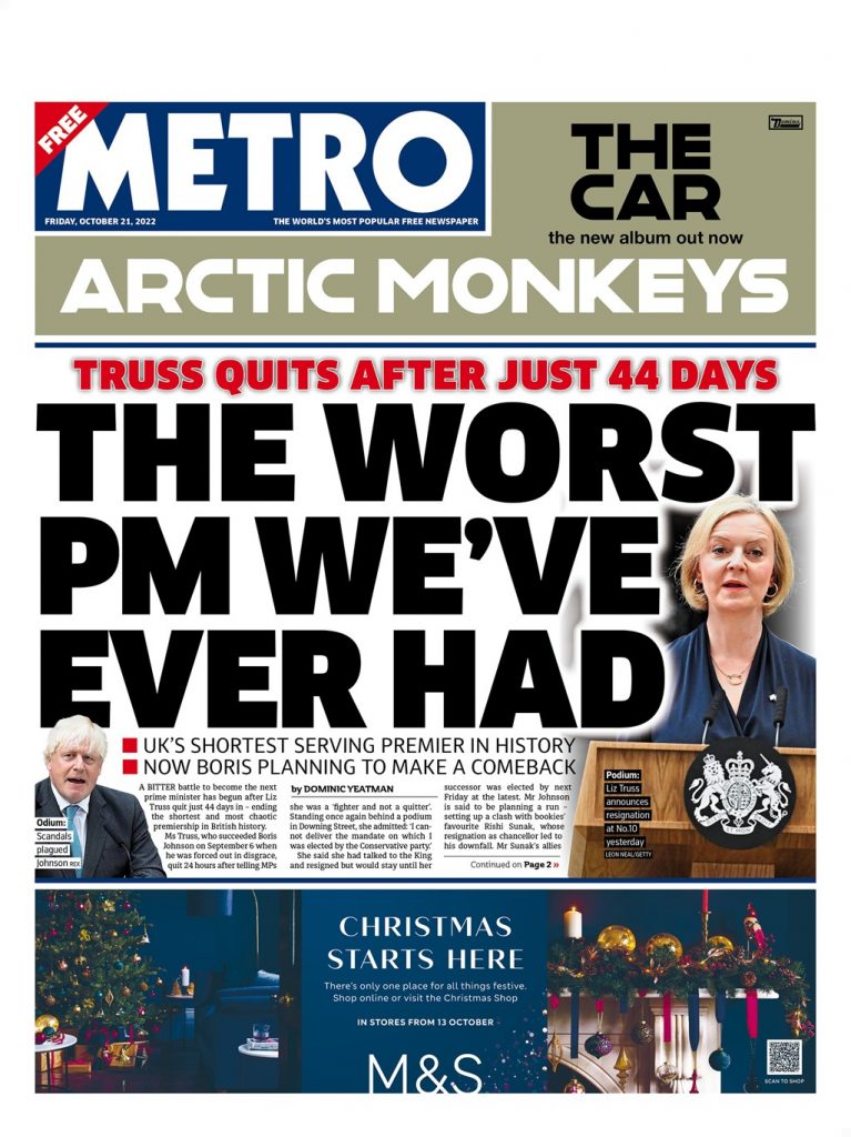 Og ekki fær Liz betri kveðjur frá Metro: Versti forsætisráðherra allra tíma.
