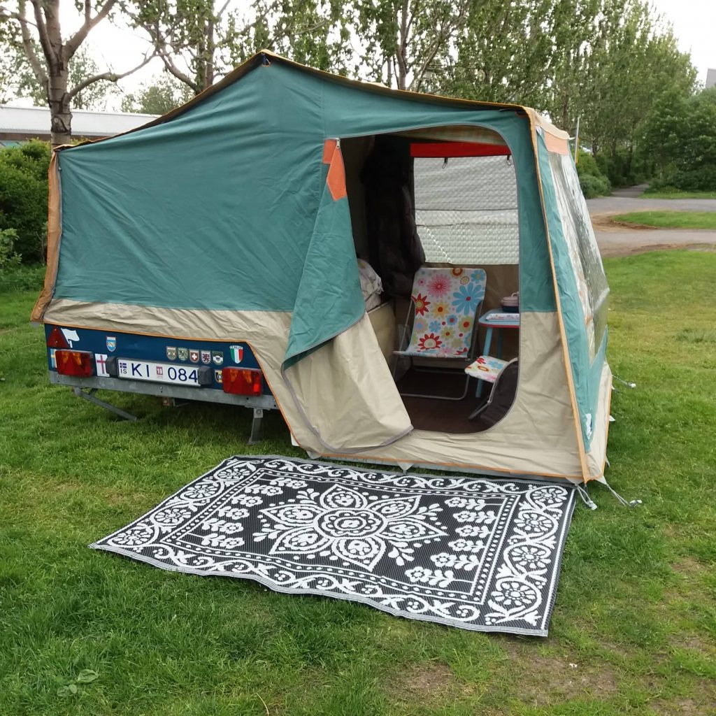 Tjaldvagninn sem var heimili Guðbjargar eftir að hún missti íbúðina.