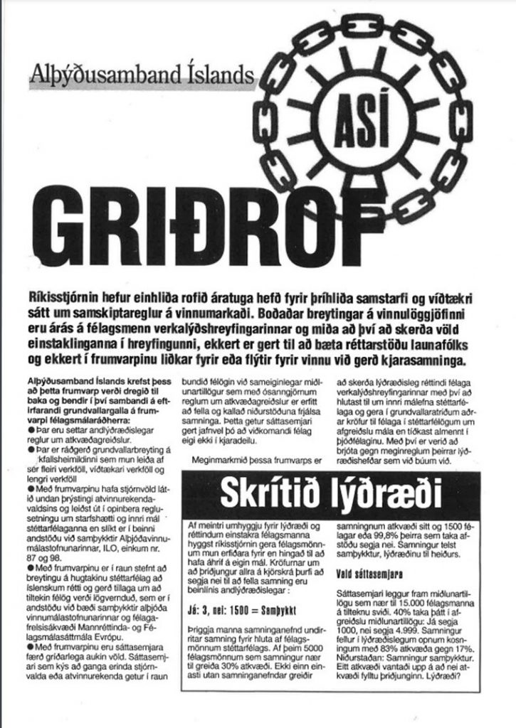 Breytingar á lögum nr. 80/1938 á árinu 1996, m.a. um miðlunartillögur og atkvæðagreiðslur voru gerðar í fullkominni andstöðu við ASÍ. Af því tilefni var rit það gefið út sem skoða má með þessari frétt og ber heitið „GRIÐROF“.