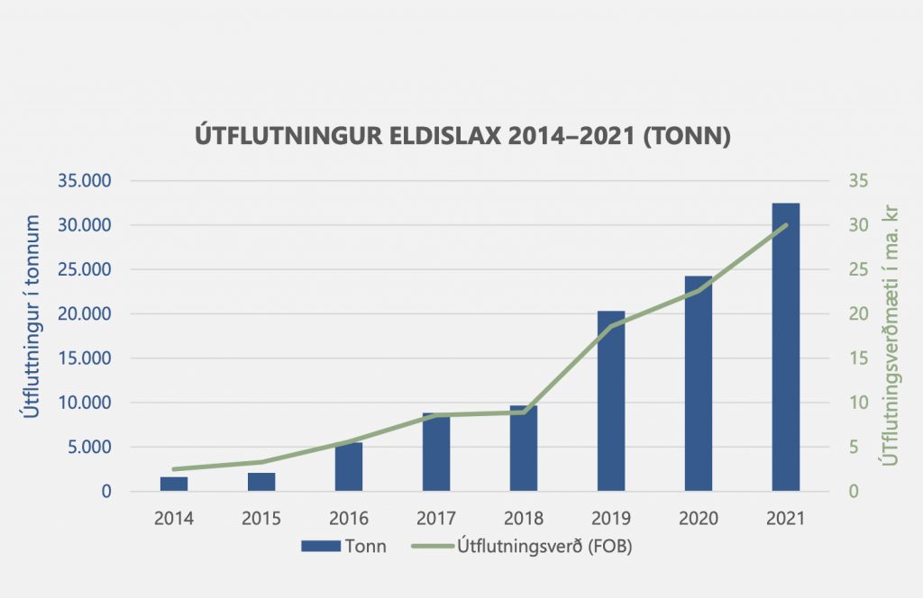 Útflutningur og útflutningsverðmæti laxeldisafurða hefur aukist í samræmi við