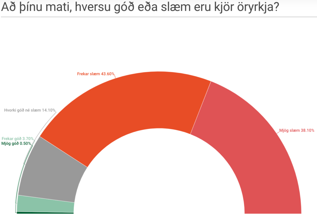 Alls sagði 38,1 prósent kjör öryrkja mjög slæm og 43,6 prósent frekar slæm og var lítill munur á afstöðu eftir aldri, kyni, búsetu, menntun eða tekjum.
