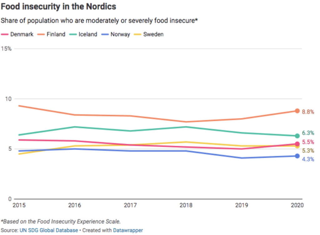Við skulum hafa í huga að aftur notum við meðaltöl og vissulega er varla hægt að tala um fátækt á Íslandi ef við miðum okkur við Kongó en samkvæmt okkar eigin viðmiðum er talið að allt að einn af hverjum tíu á Íslandi búi við fátækt. Og þó við mælumst ekki með hungur á Íslandi þegar litið er á tölurnar á bak við markmiðið er ágætt að skoða raunverulegar tölur en þá kemur í ljós að yfir 6% á Íslandi búa reyndar við fæðuóöryggi. Það eru um 23 þúsund manneskjur og stór hluti þeirra eru börn.