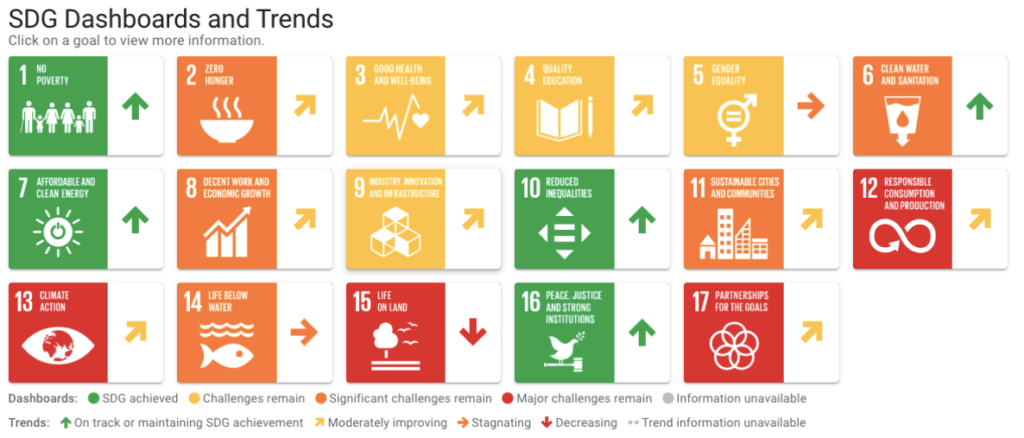 Ísland kemur vel út í fjórum flokkum: fátækt, hreinni orku, jöfnuði og markmiði 16 sem skoðar hvort lönd eru friðsæl og stofnanir tryggi grunnréttindi fólks.