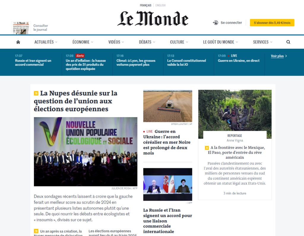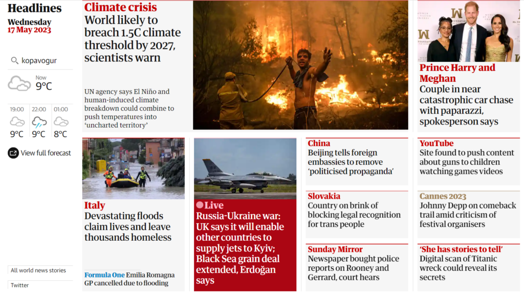 Að vísu er ein undantekning frá þessu en það er breski fjölmiðilinn The Guardian. Þar birtist þessi frétt um ræðu Úrsulu von der Leyen frekar ofarlega.