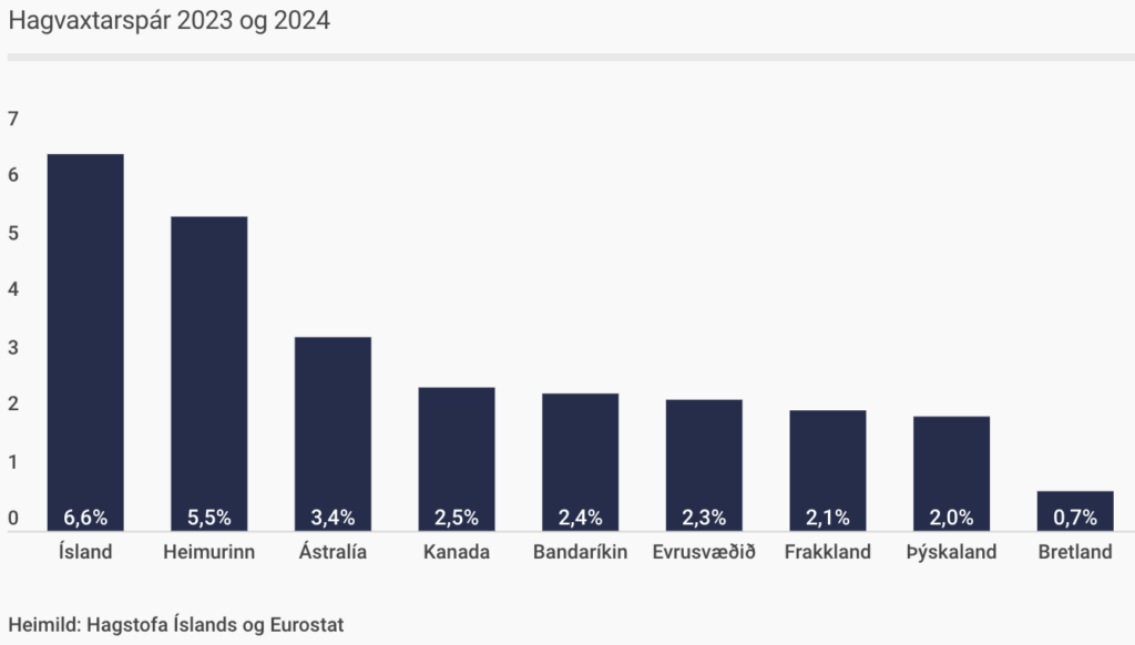 Á þessari öld hefur íslenska hagkerfið vaxið nær þrefalt á við Evrópulöndin að meðaltali en verið mun óstöðugra. Sé horft til staðalfráviks hagvaxtar hefur hagkerfið verið nær 80% sveiflukenndara en Evrópa og tvisvar sinnum sveiflukenndara en Danmörk, svo dæmi séu tekin. Gangi hagvaxtarspár ársins 2023 og 2024 eftir mun hagkerfið halda áfram að vaxa umfram samanburðarlöndin. Spáð er þrisvar sinnum meiri hagvexti hér en á evrusvæðinu árin 2023 og 2024.