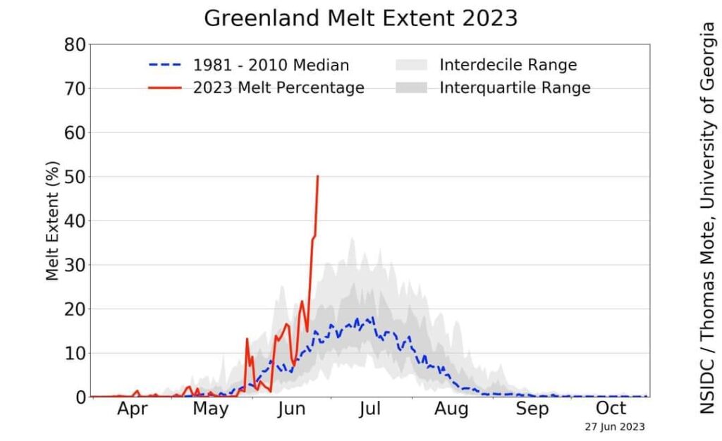 Ástæðan fyrir þessu er losun mikils kalds vatns í sjóinn í norðri vegna bráðnunar Grænlandsjökuls, en sú bráðnun hefur slegið öll met nú í sumar.