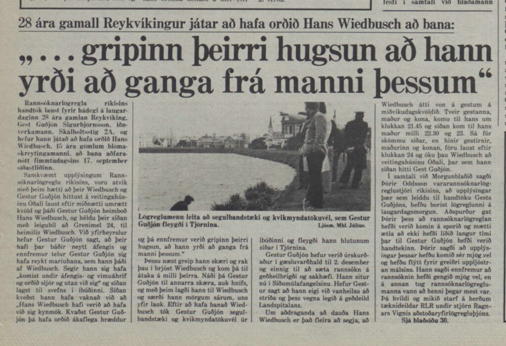 En þarna er Hans Wiedbush, sem er drepinn á hroðalegan hátt, á heimili sínu við Grenimel. Fyrir þá sem ekki muna, geturðu sagt okkur aðeins frá þessu máli?