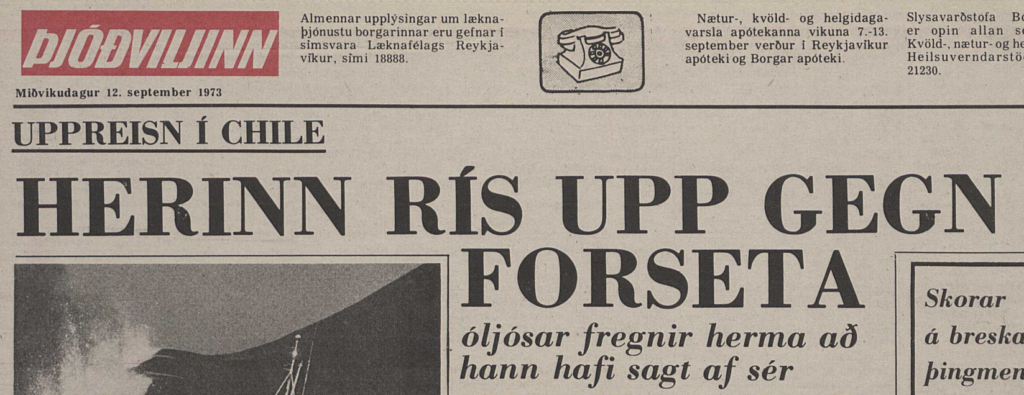 En hér eru fréttir Þjóðviljans og Moggans frá 12. september 1973, þar sem blöðin reyna að segja Íslendingum frá því sem gerðist daginn áður: