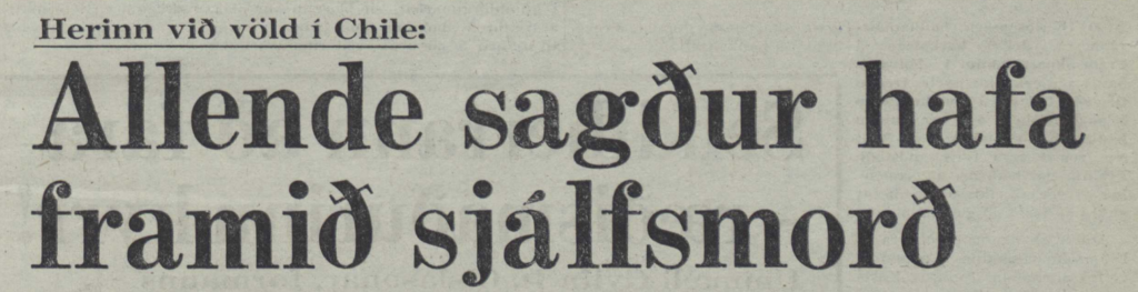 „Þessi dagur 11. september hefur í hugum flestra Chilebúa sess sem sorgardagur þegar fasisminn sálgaði lýðræðinu,“ skrifar Kristinn Hrafnsson á facebook-síðu sína. „Nú er líka vel vitað að Nixon stjórnin Bandaríska blés í glæðurnar í þessu valdaráni og CIA falið að grafa undan Allende stjórninni. Réttlætingin var að verja þyrfti landið fyrir sósíalismanum en valdaránið var fyrst og síðast til að verja hagsmuni arðrænandi stórfyrirtækja og fámennisklíku ólígarka í Chile sem töldu það sinn náttúrurétt að sölsa undir sig auðlindir landsins.“