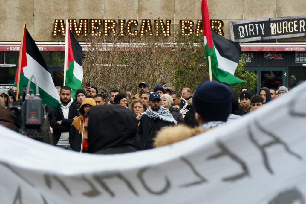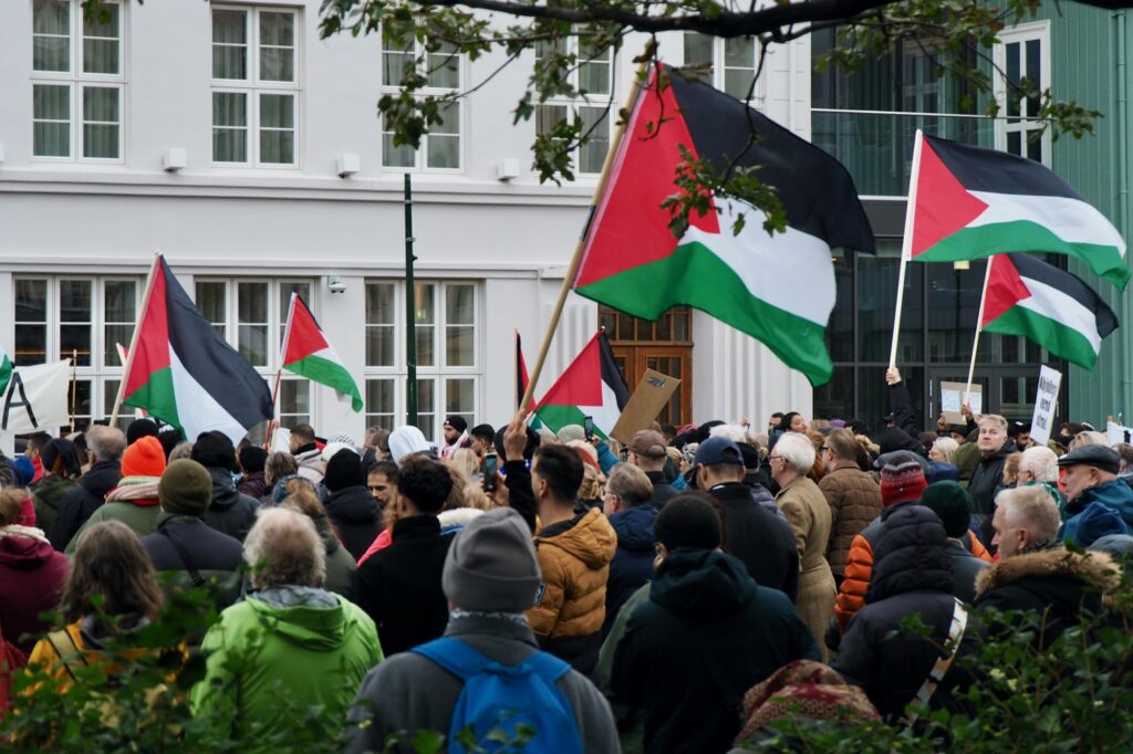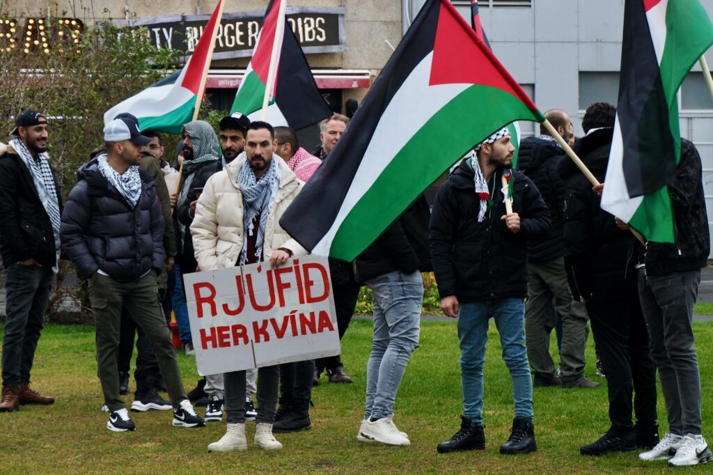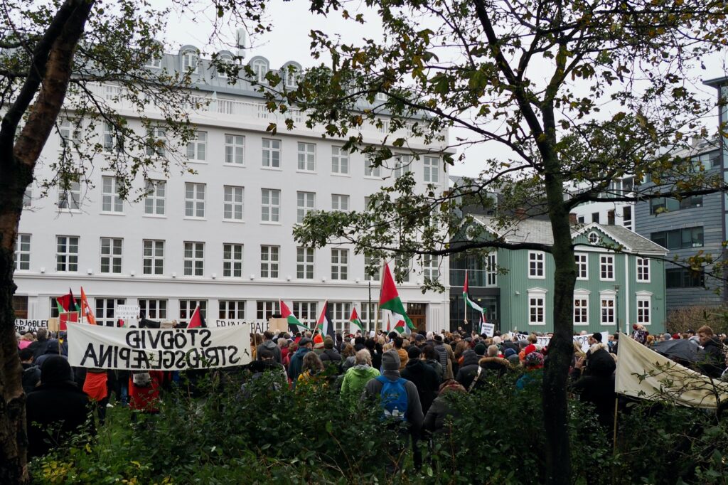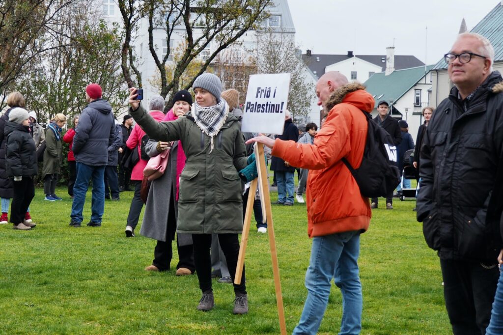 Það virðist ekki ríflegt að ætla að um þúsund manns hafi tekið þátt í mótmælafundi á Austurvelli á sunnudag, undir yfirskriftinni „Stöndum með Palestínu!“ Í fundarboðinu mátti lesa: „Ekki í okkar nafni! Við stöndum með palestínsku þjóðinni og fordæmum þá stríðsglæpi sem framdir eru af ísraelskum stjórnvöldum.“