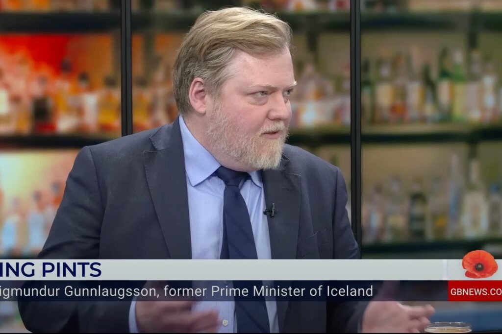 Nigel Farage, hægri-popúlisti í breskum stjórnmálum og nú sjónvarpsþáttastjórnandi, kynnti Sigmund Davíð Gunnlaugsson, fyrrverandi forsætisráðherra Íslands, sem viðmælanda í spjallþætti sínum, Talking Pints, á GBNews á fimmtudag. Þeir sötruðu hvor af sínum bjórnum á meðan Sigmundur sagði Farage frá því að „glóbalistar“ á Íslandi hati sig, íslenskir umhverfisverndarsinnar séu mótfallnir vatnsaflsvirkjunum, hvernig Íslandi er betur borgið utan Evrópusambandsins, hvernig Sigmundur sjálfur, í slagtogi við aðra, koma efnahag landsins á réttan kjöl eftir hrunið 2008.