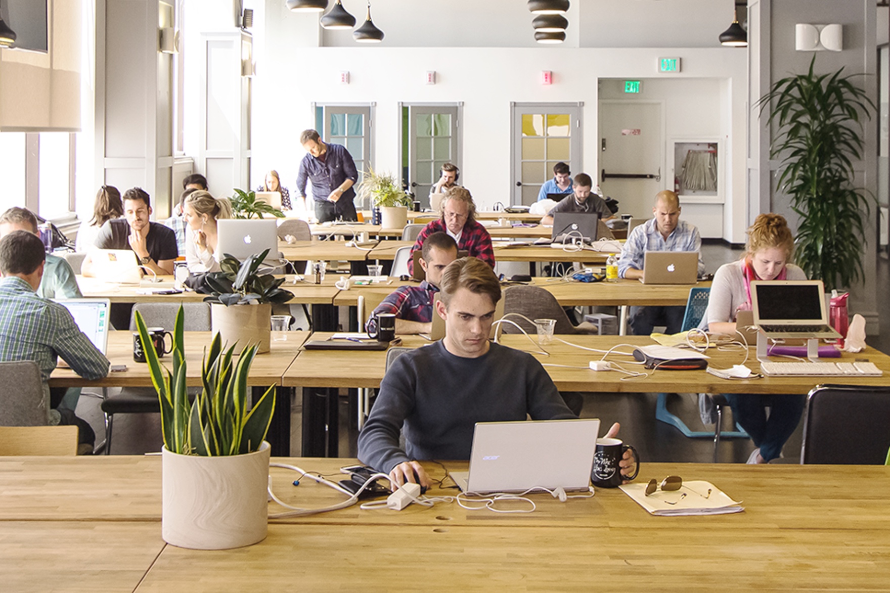 Svonefndir frumkvöðlar, sem einkenna ekki síst bandarískt viðskiptalíf, sáu sér leik á borði í þessari þróun og tóku að skipuleggja skrifstofurými á svipuðum nótum: sameiginleg vinnurými sem notendur gátu keypt aðgang að, með leigu til lengri eða skemmri tíma og með meiri eða minni réttindum til afnota. Þessi opnu vinnurými, þar sem engum eða fáum er ætlað að vera með fasta vinnustöð heldur færa sig milli borða eftir því hvað er laust hverju sinni, þóttu mörgum heillandi tímanna tákn, svo mjög að þau hafa síðan rutt sér til rúms við rótgrónar stofnanir á við Háskóla Íslands.