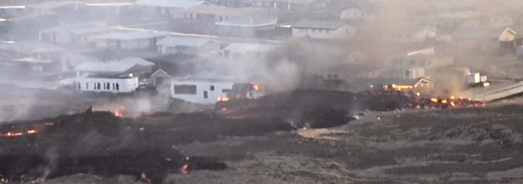 Um hádegisbil í gær opnaðist önnur sprunga steinsnar frá bænum. Þegar hraun úr þeirri sprungu fór að vella inn í bæinn og kveikti í húsum raungerðist í huga bæjarbúa sem höfðu yfirgefið Grindavík fyrr um nóttina í rýmingu á vegum Almannavarna, að versta sviðsmynd allra sviðsmynda var veruleiki. Þess utan að engin slys hafa orðið á fólki í hamförunum um helgina.