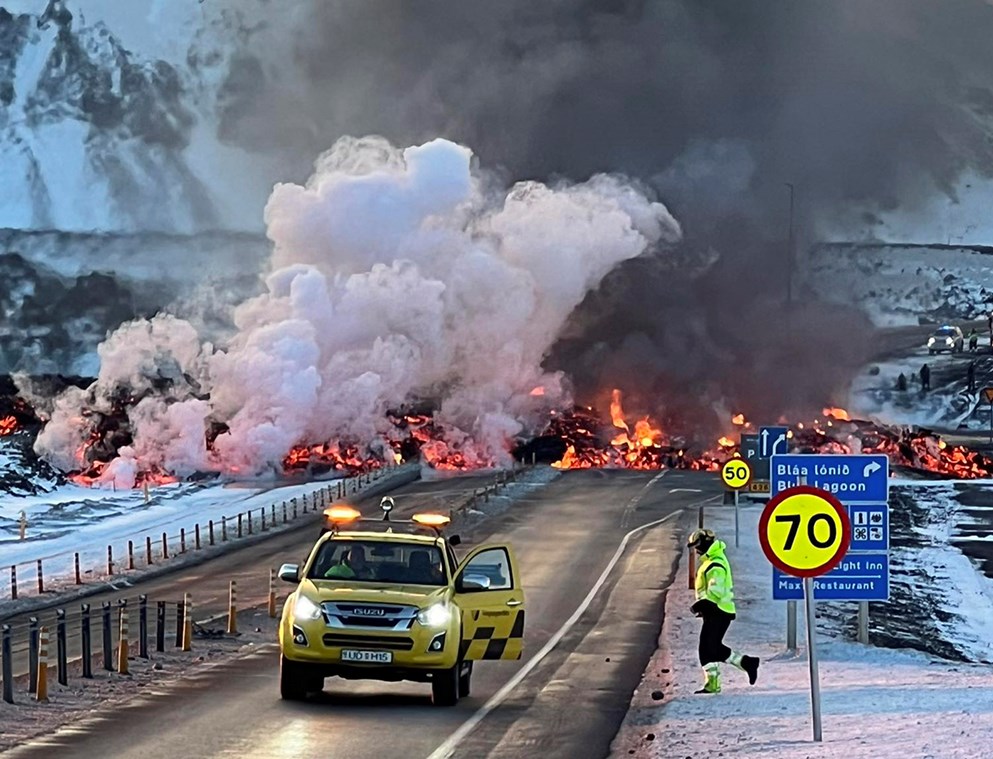 Hraun er runnið yfir heitavatnslögnina, svokallaða Njarðvíkuræð fyrir vatn frá Svartsengi að Fitjum í Reykjanesbæ.