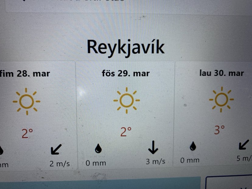 Fimm skjannabjartar sólir eru á spákortum Bliku fyrir næstu fimm dagana í Reykjavík.