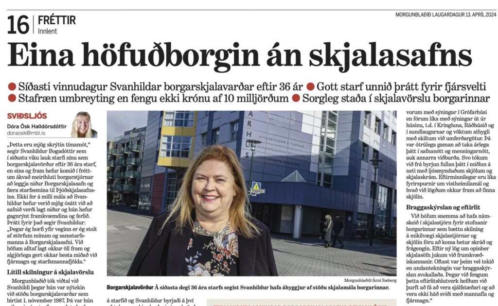 Þórarinn deilir með gremju sinni frétt um að búið er að leggja niður Borgarskjalasafnið Fullyrðir Mogginn í fyrirsögn að Reykjavík sé eina höfuðborgin án skjalasafns.