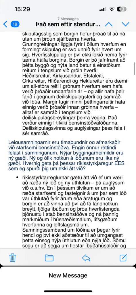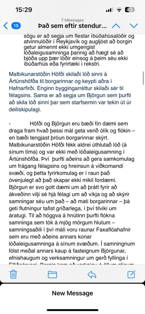 Dagur birtir tölvupóstsamskipti okkar opinberlega. Það er ný upplifun fyrir mig. Hann gerir athugasemd við að ég hafi ekki greint frá innihaldi póstsins í þættinum þar vísar hann í lið í samþykktinni sem hann segir alveg skýra að „einungis verði krafist greiðslu gatnagerðargjalda af hendi lóðarhafa“. Hvers vegna stóð ekki skýrar í samþykktinni að til stæði að gefa olíufélögunum byggingarrétt fyrir milljarða? Hvers vegna vann borgin ekkert kostnaðarmat og ekkert lögfræðiálit áður en menn settust við samningaborðið?