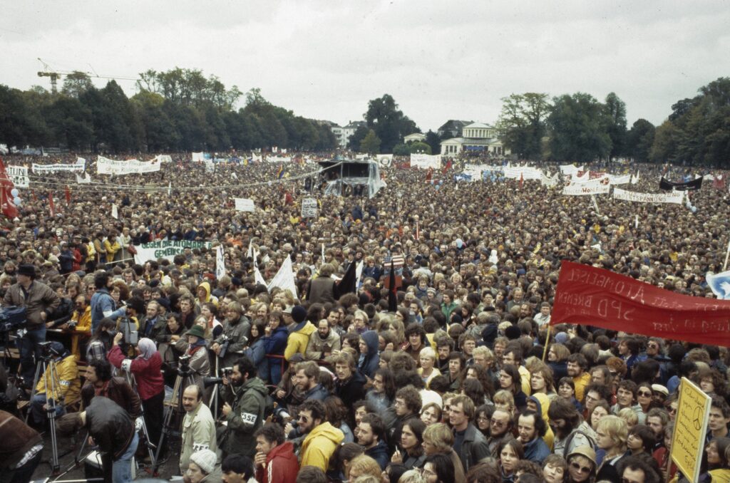 Mótmæli gegn kjarnavopnum í Bonn í Þýskalandi 1981. Ákvörðun Bandaríkjanna að koma fyrir meðaldrægum eldflaugum í Þýskalandi og Evrópu hafði upphaflega verið tekin í forsetatíð Jimmy Carter árið 1979. En þegar Ronald Reagan tók við forsetaembættinu 1981 og hélt áfram með sömu stefnu leiddi það til mikilla mótmæla sem beindust gegn Reagan, meðaldrægum eldflaugum og kjarnavopnum almennt.