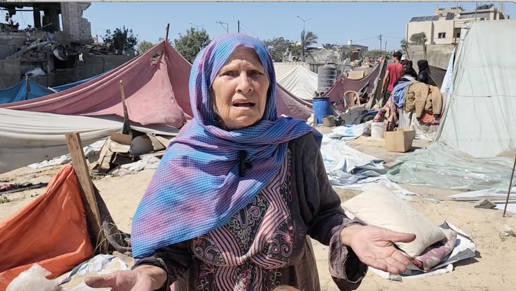 82 ára gömul kona, Fawzia Sheikh Youssef, var stödd í flóttamannabúðunum þegar loftárásirnar áttu sér stað. Hún lifði af, eftir að hafa verið grafin í sandinn í sprengjuregninu. Hún segist aldrei hafa upplifað neitt þessu líkt áður á ævinni. Hún segir í viðtali við Mondoweiss að hún hafi áður verið á flótta í Nakba árið 1948 þegar hún var aðeins 6 ára gömul, að þá hafi hún komið til Khan Younis-svæðisins og gist þar með fjölskyldu sinni í tvö ár í tjaldi. Núna, 76 árum síðar, er hún að verða vitni að fjöldamorðum sem hún hefur ekki séð síðan í Nakba.