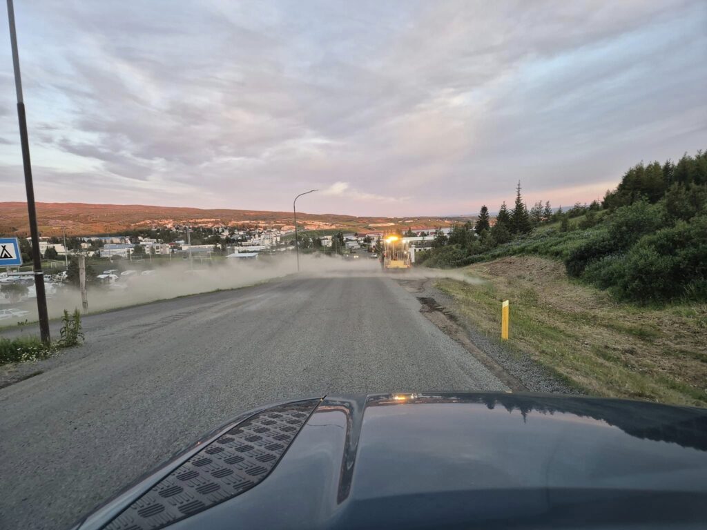 En bar þá að þegar síst skyldi vinnuvél með götusóp. Umsjónarmaður fór að sópa götuna af miklum móð en ekki vildi betur til en svo að allt rykið þyrlaðist upp og lagðist yfir nágrennið, sérstaklega tjaldstæðin líkt og myndir Stefáns sýna.