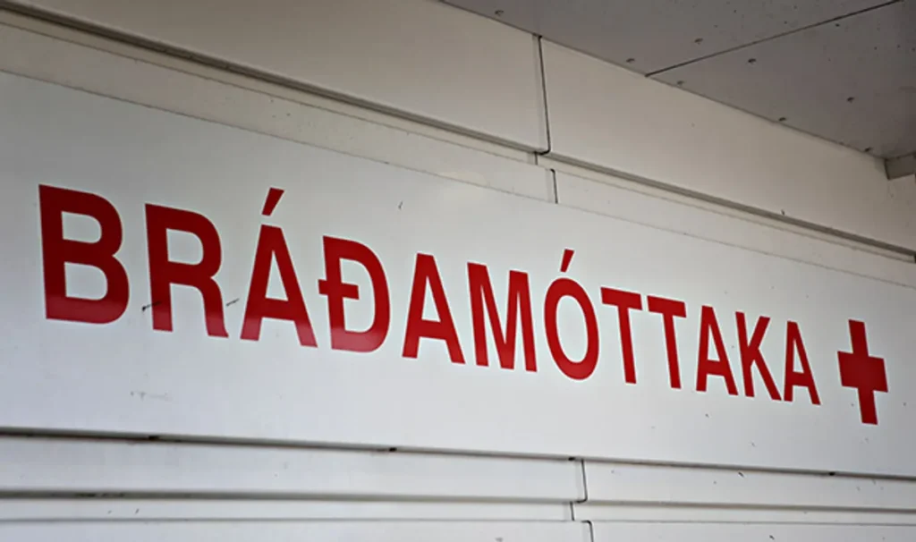„Einn var alblóðugur á höfði með brotnar tennur, aðrir veinuðu af kvölum. Kona á miðjum aldri veigraði um gangana og sveiflaði höndum í vímu eða geðrofi. Læknir sagðist vilja ræða í einrúmi við unga konu og eiginmaður hennar tryllist vegna þess að honum var ekki ætlað að hlusta á samræður þeirra. Með þeim var lítið barn. Með mér á stólunum voru tveir landar mínir en sex menn af erlendum uppruna.“