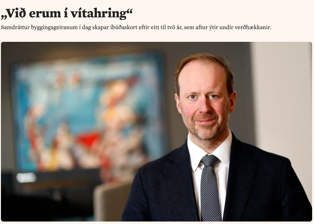 „Ef þessir menn tryðu goðsögnum kapítalismans myndu þeir óska þess að þeir verktakar sem skyldu ekki þarfir markaðarins og byggðu endalaust vitlausar íbúðir færu lóðbeint á hausinn svo rými skapaðist fyrir aðra sem væru betur læsir. Með því að bankar og ríkisvald verja hina vitlausu verktaka framlengjum við vandann og komum í veg fyrir lausnina. En auðvitað trúa þessir menn ekki eigin goðsögnum. Fyrir þeim er kapítalisminn það sem hann er, tæki til að verja þann auð sem hefur safnast upp, ætíð á kostnað samfélagsins.“