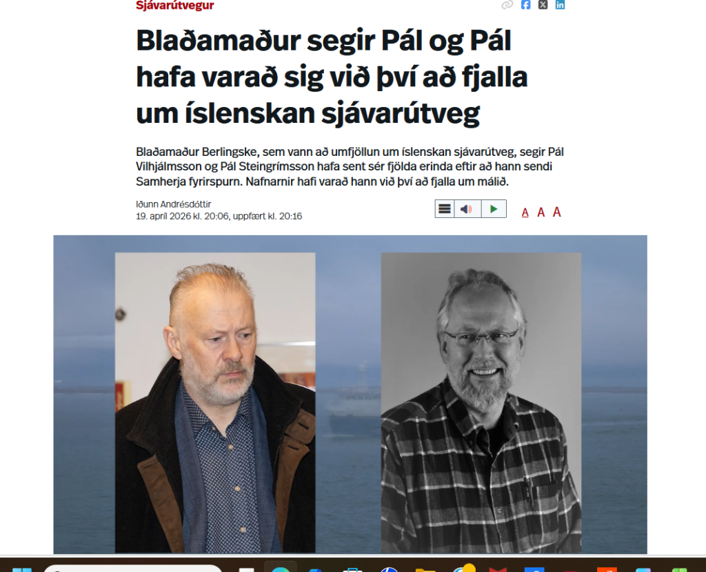 Myndin að ofan er skjáskot af frétt Rúv þar sem fjallað er um afskipti Pálanna af vinnu danska blaðamannsins.